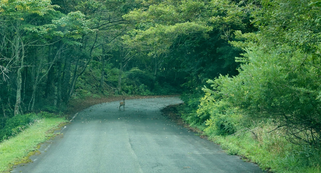 車とすれ違うことのない山道で何度も鹿に出会ったが、熊に出会ってもおかしくない感じがした。