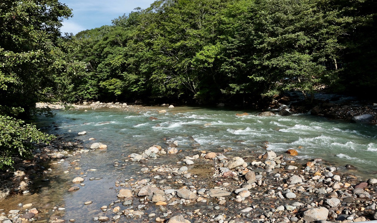 遠野はゆったり緩やかな流れでの釣りが多いが、ここは美しい渓流の風景だ。