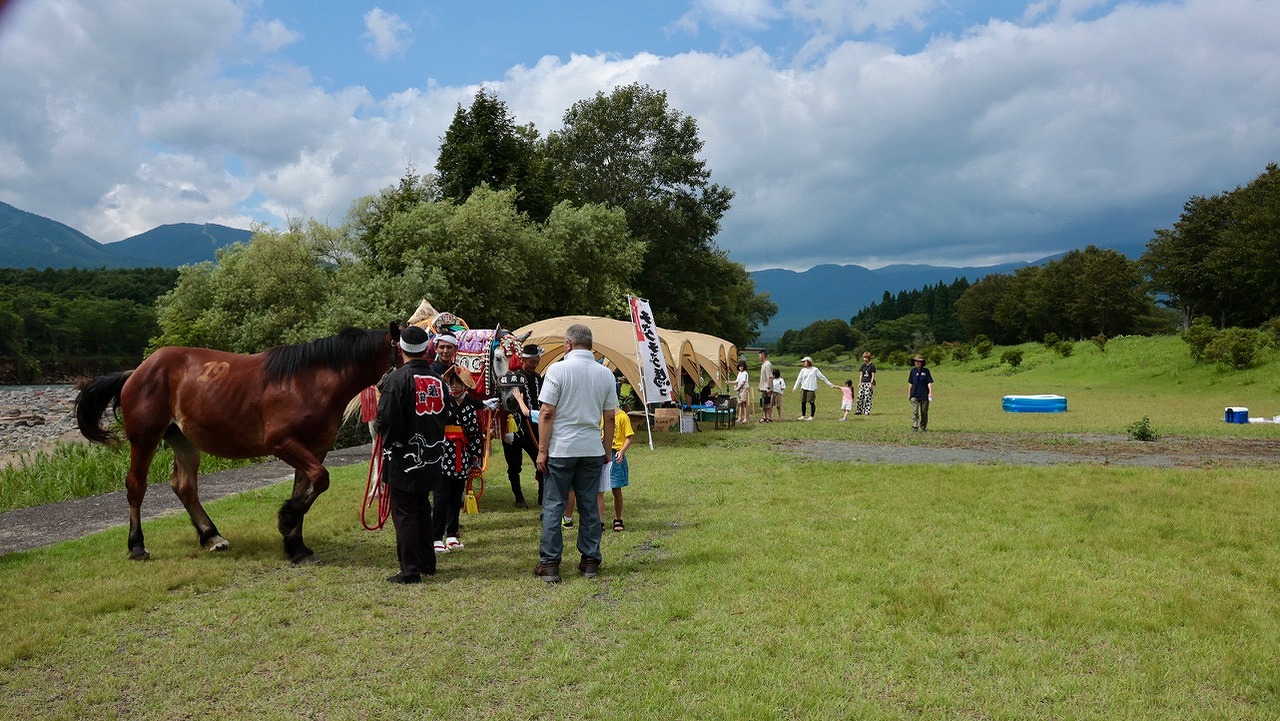 時間潰しにの二日間泊まる宿を見に盛岡市内へ向かう途中、デイキャンプとチャグチャグ馬っこ(本来のお祭りは多分6月)の催しを見つけ立寄って来た。