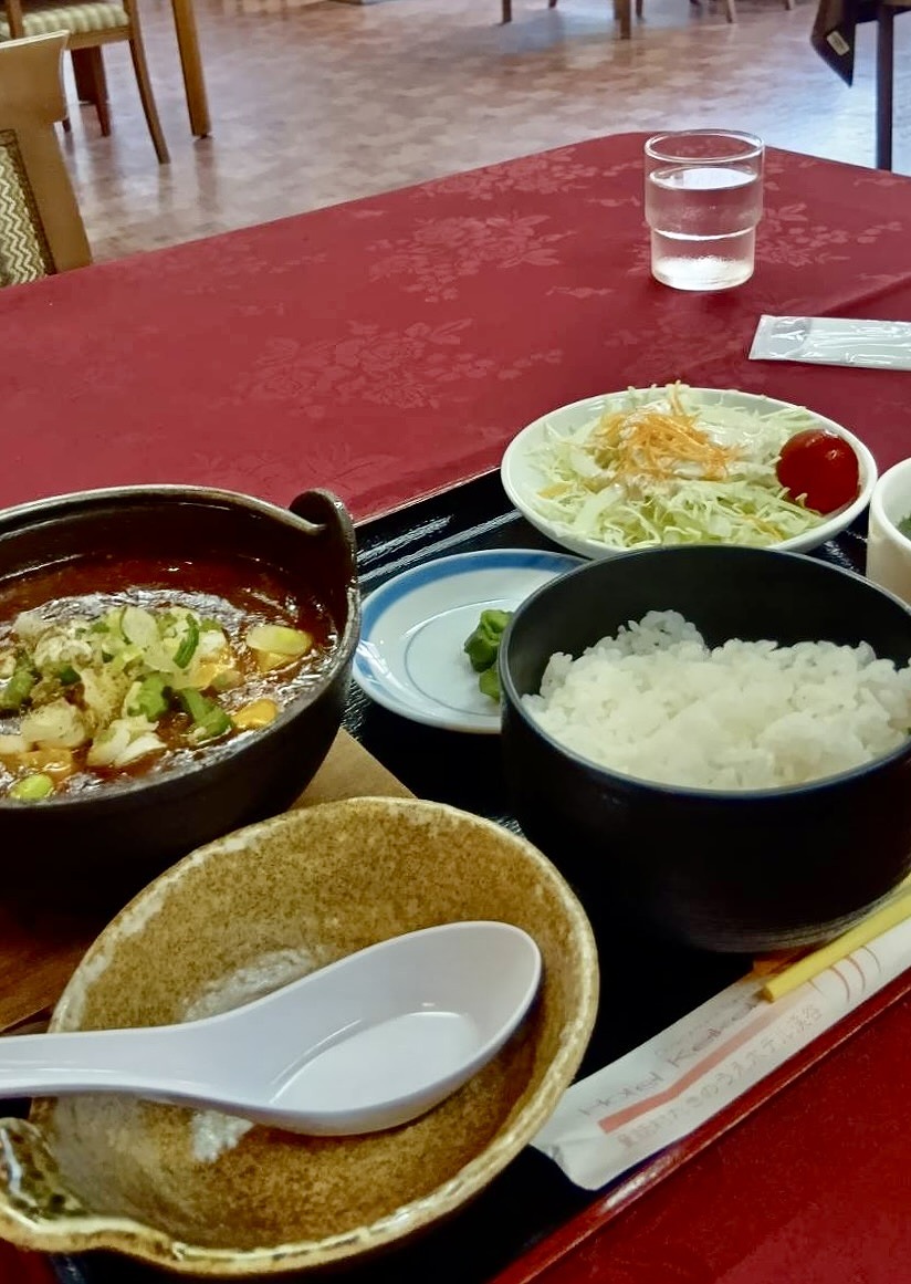 渚滑川は明日まで待ってダメなら移動することにして今日は温泉に入りホテルのレストランで早めの夕食(麻婆豆腐がおすすめ!)をとり就寝。