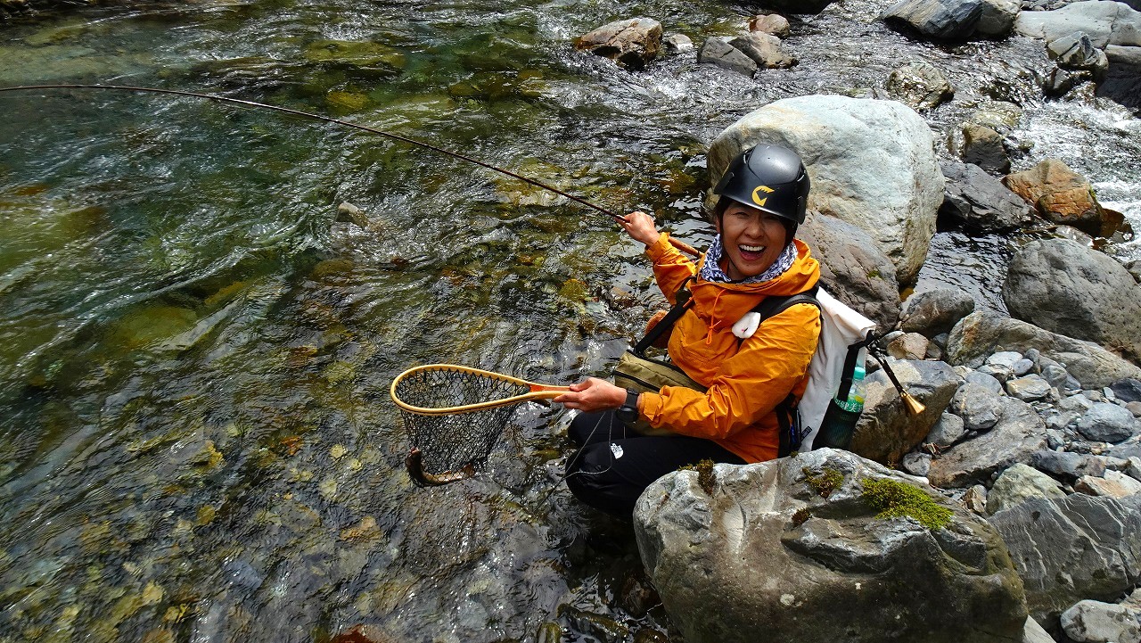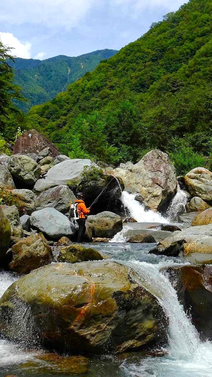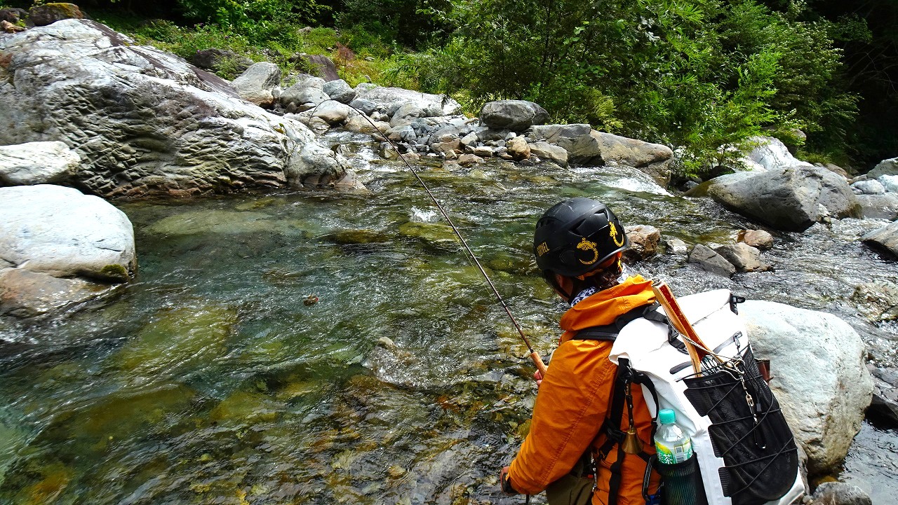 うっかり近づいてしまうと走られてしまうのでポイントごとに先にイワナを見つけてから狙います。