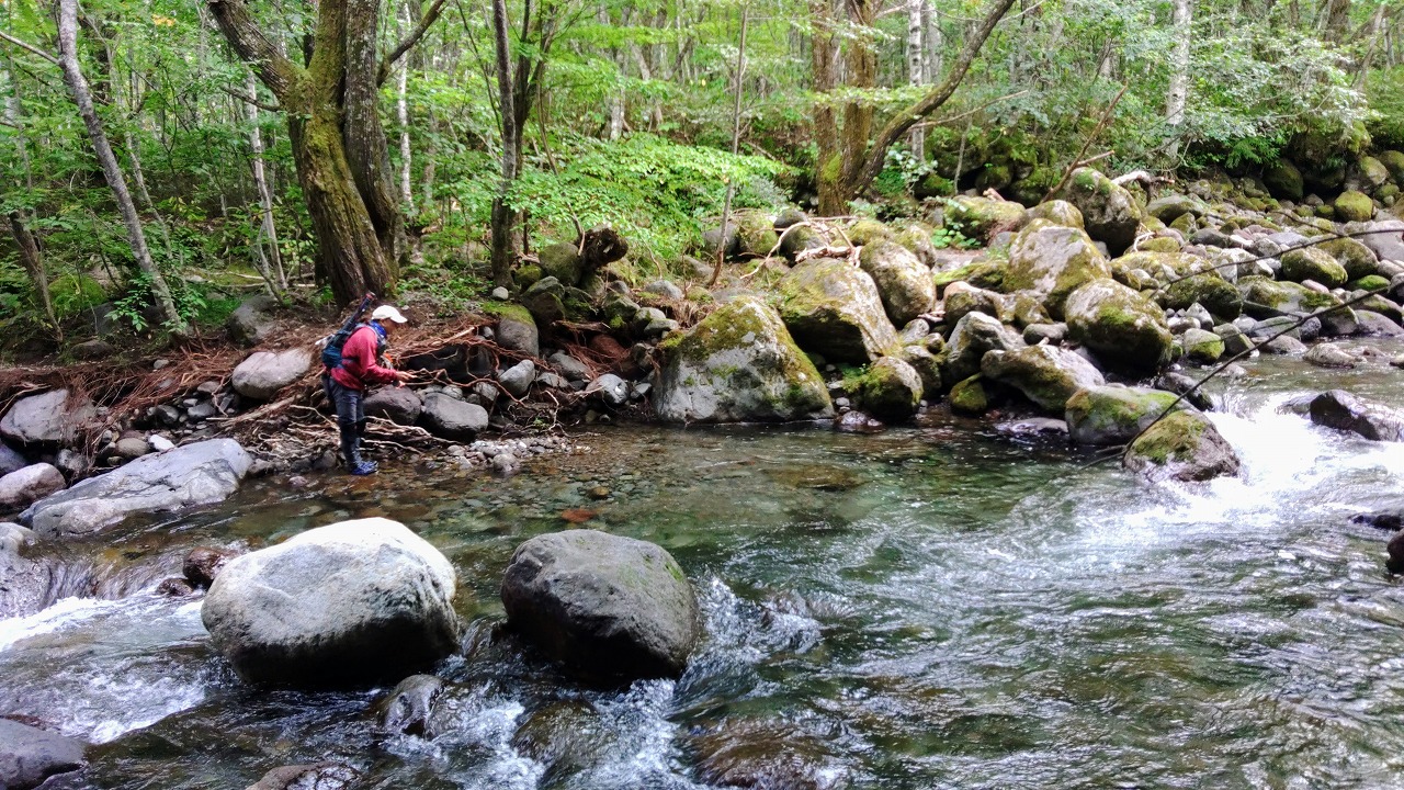 禁漁間近の北アルプス南端の渓へ。1日目。