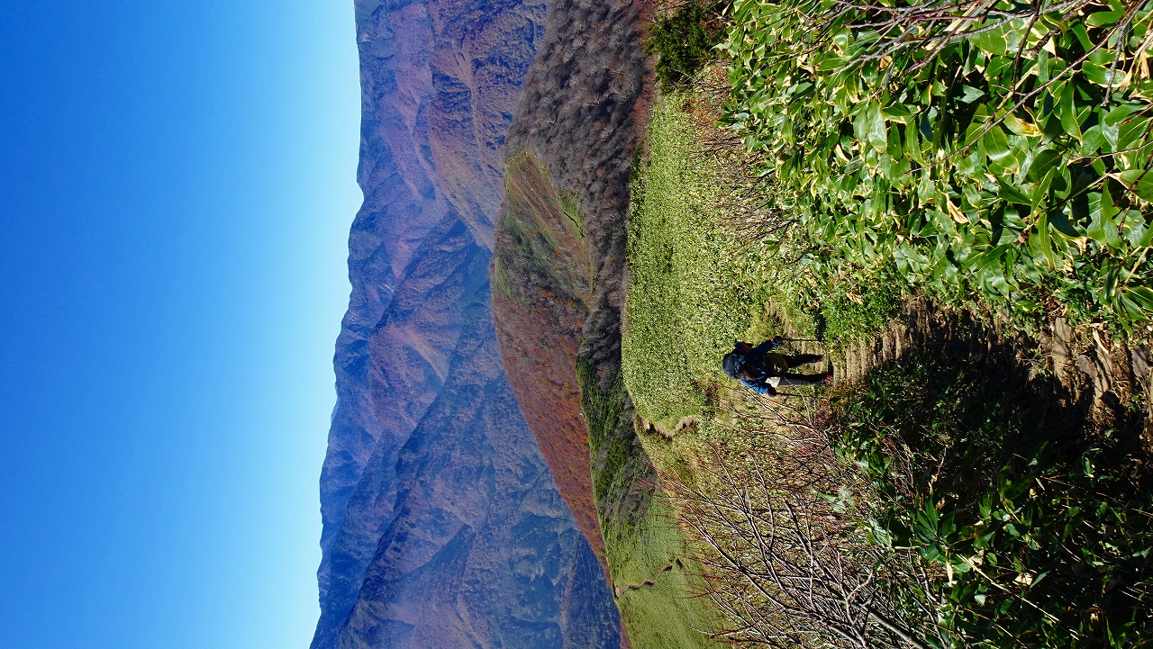 健脚さんたちは皆さんこの先の仙ノ倉山までの稜線歩きを楽しむみたいですが、我々には体力的にも時間的にも無理(笑)。
