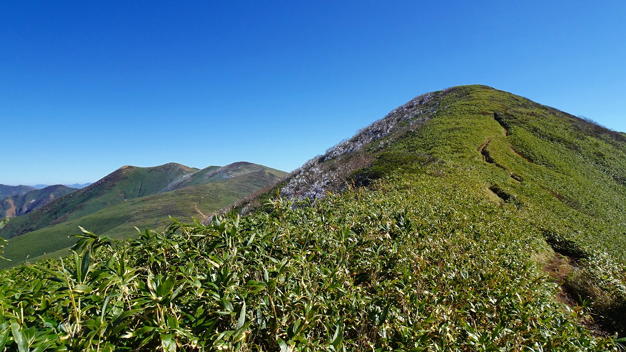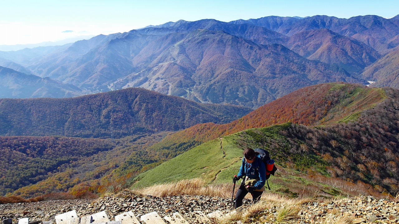 山頂からの眺望を楽しんだ後は「平標山の家」を経由した周回コースで下山します。