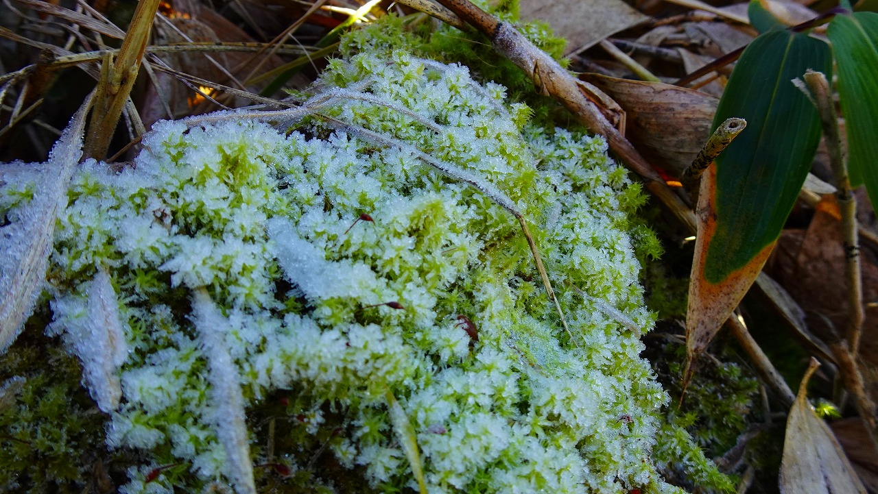 歩いているので体は暖かいですが、日陰は氷の世界です。