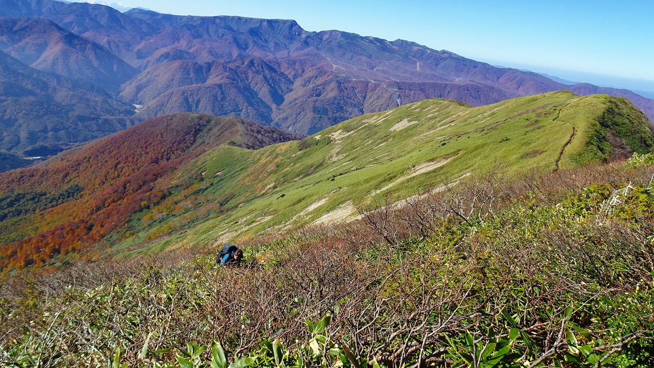 この時は正面に見えるのが平標山のピークかと思っていましたが、実際は右側に見切れたところがホントのピークだと後で知りました(笑)。