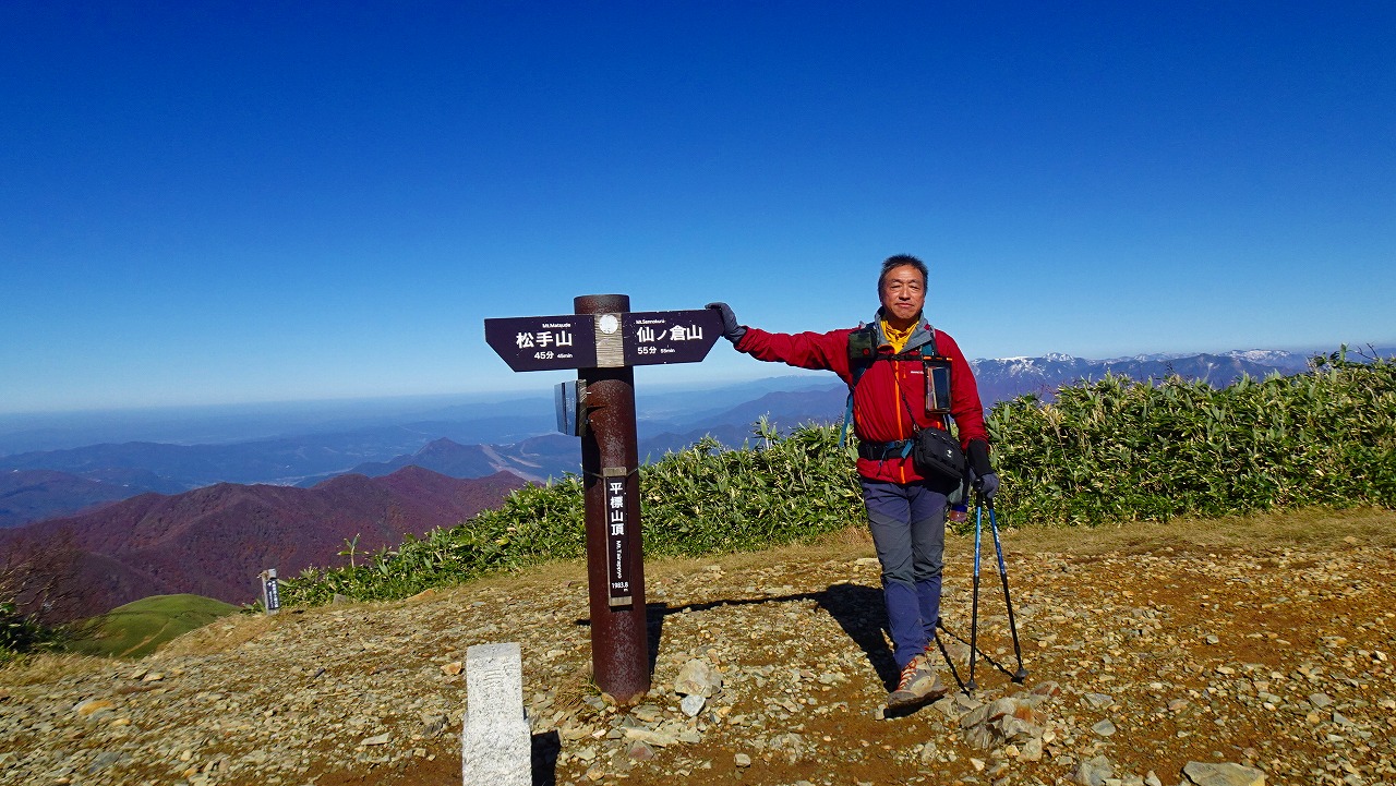 歩きはじめて6時間弱、平標山のピークに到着です。それにしてもいい天気。気持ちいい〜。