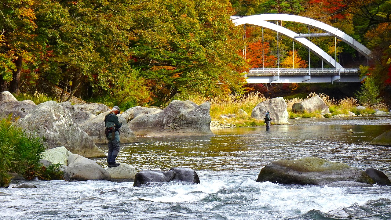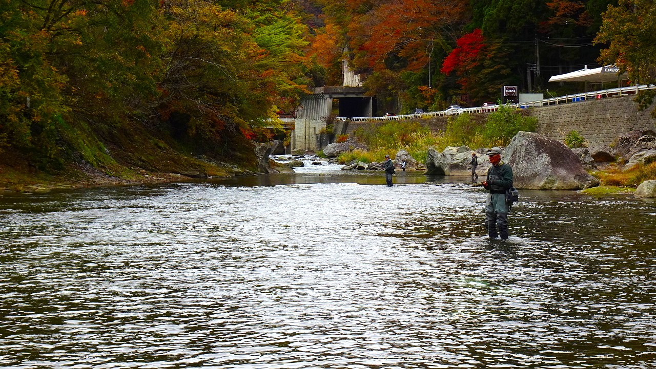 もう少しして葉っぱが散り始めると流れてくる葉っぱが釣りをやりにくくしますがこれならまだ大丈夫。