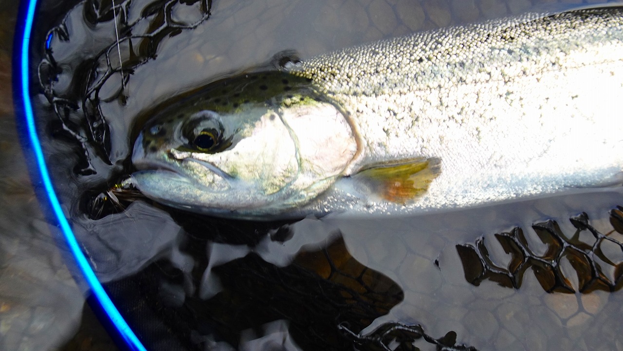 少し浮き気味になってきたのでノーウェイトのソフトハックルを流すと食ってきました。