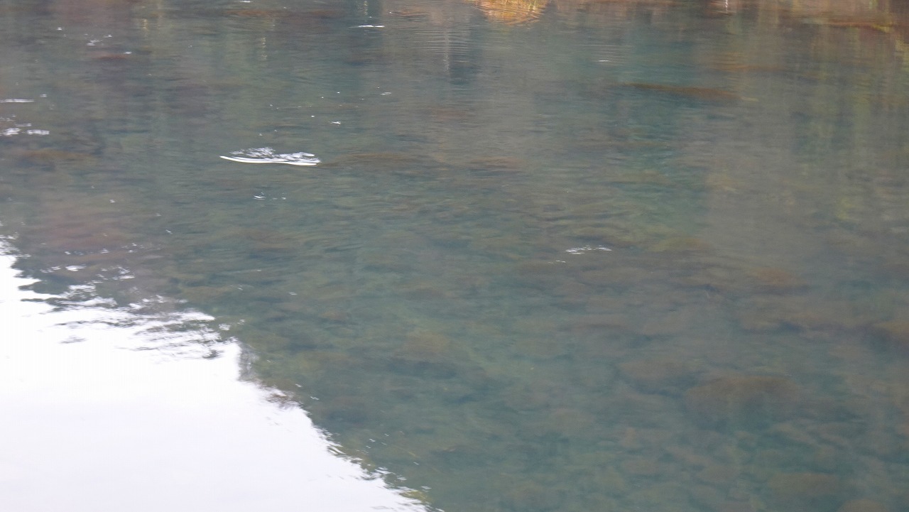 こんなポイントではニジマスがうようよ居ますがフライにはかなりいやらしい反応。