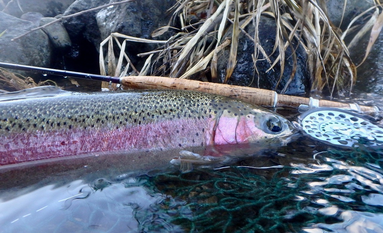 午後はライズが頻繁にあるプールで婿さんと並んでニジマスと対峙、すっぽ抜けやバラし完全無視など鱒に遊ばれ楽しい時間をすごせた。