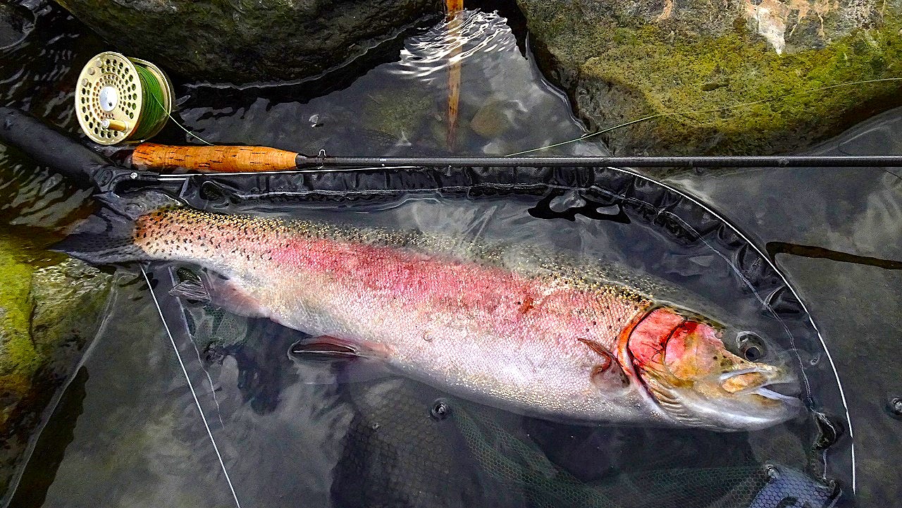 長いやり取りの末やっとネットイン。ティペットを4Xにしておいて良かった〜。