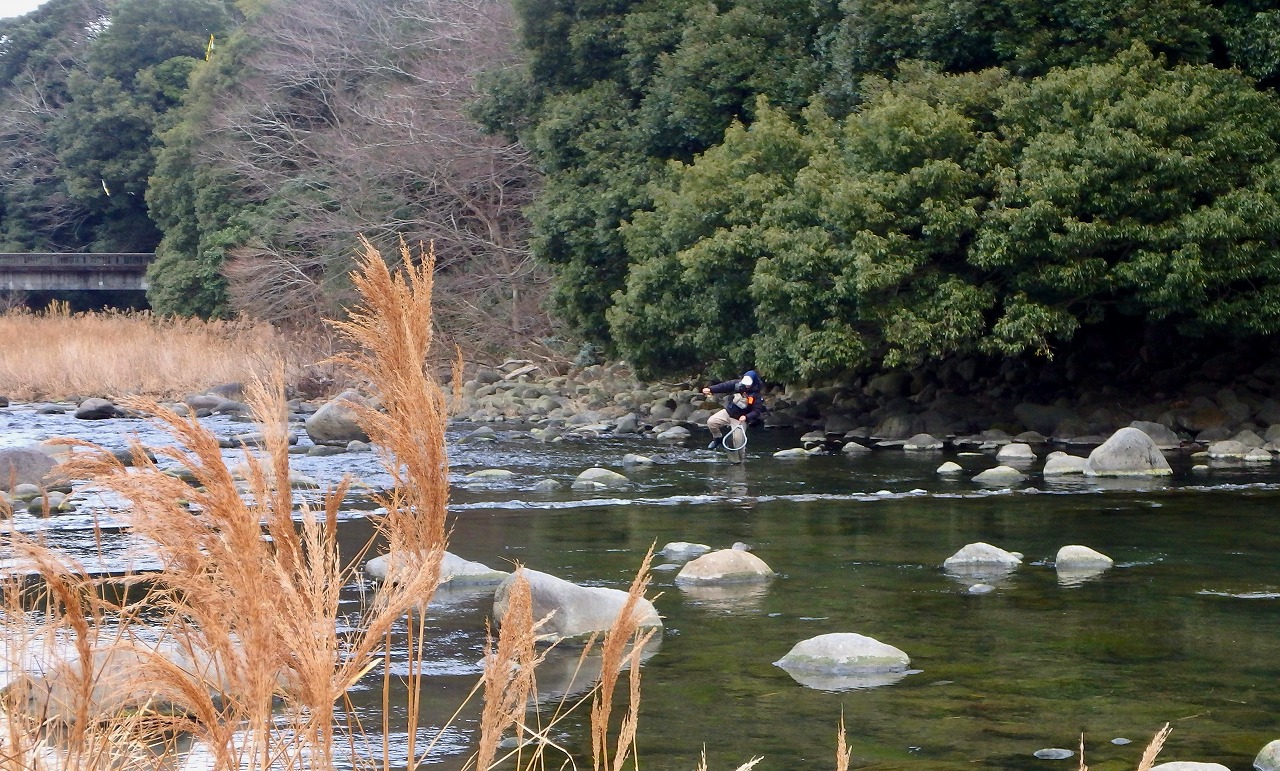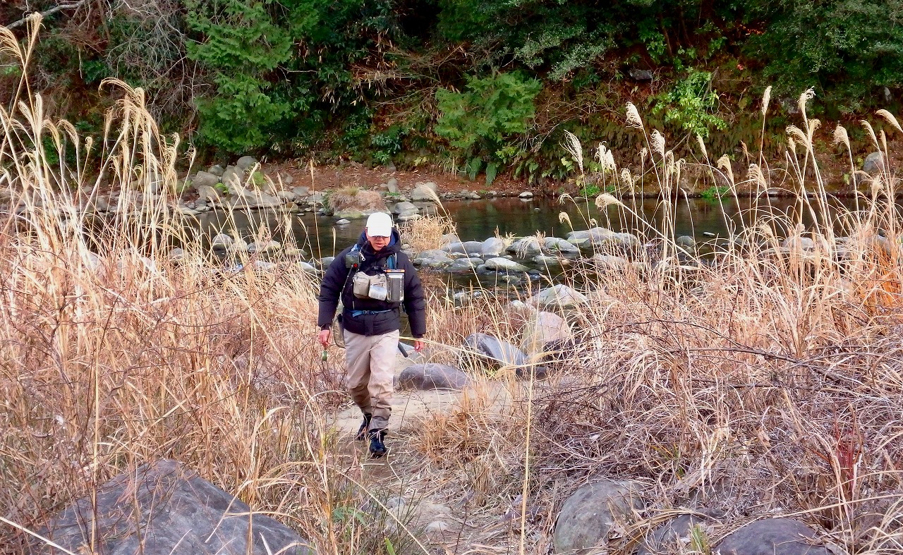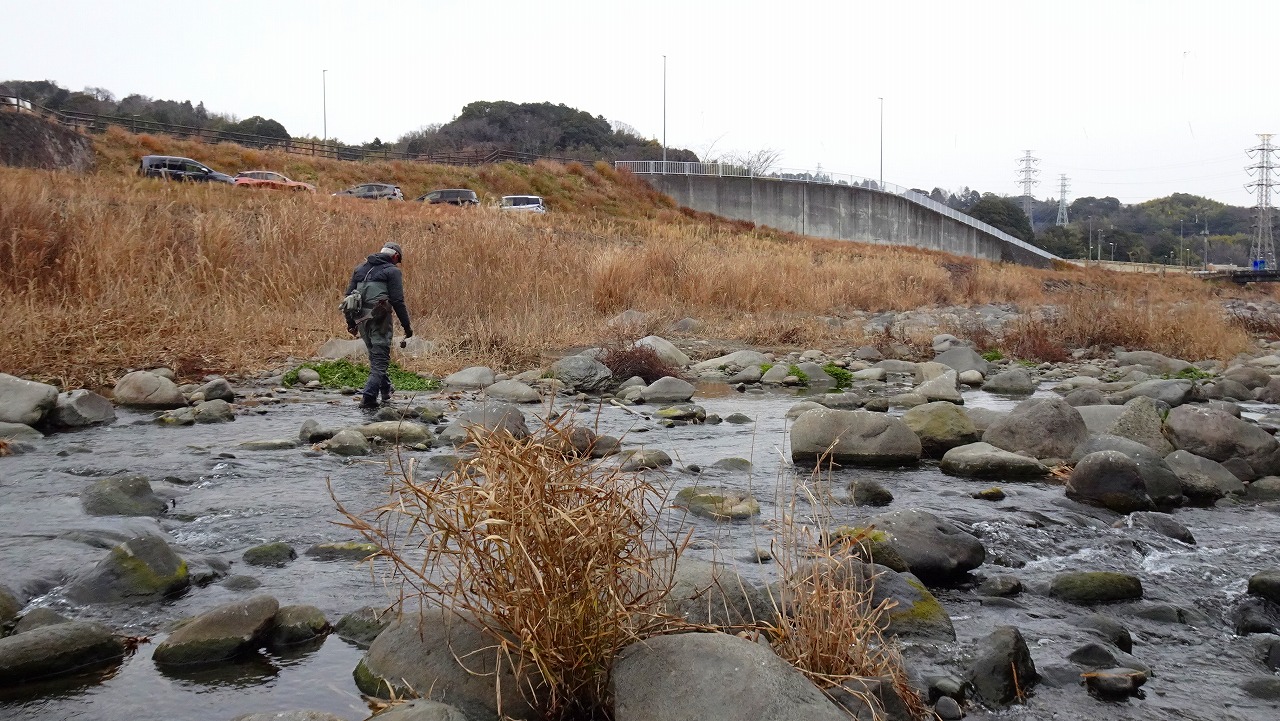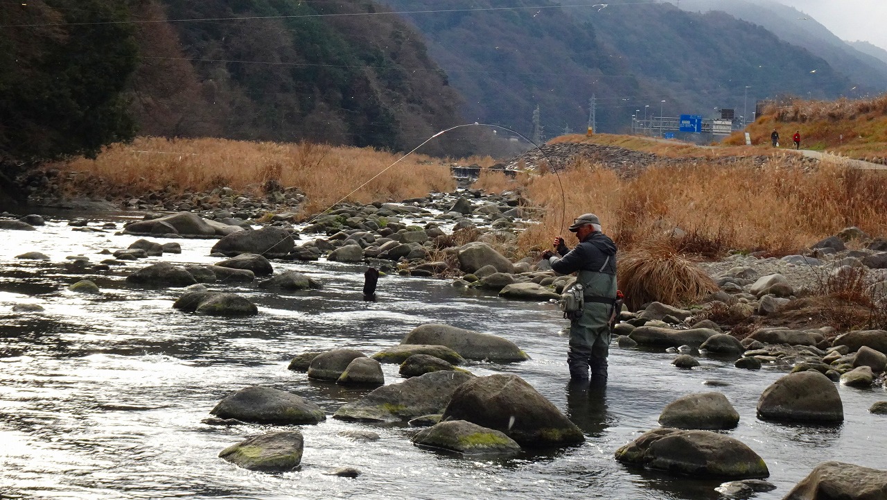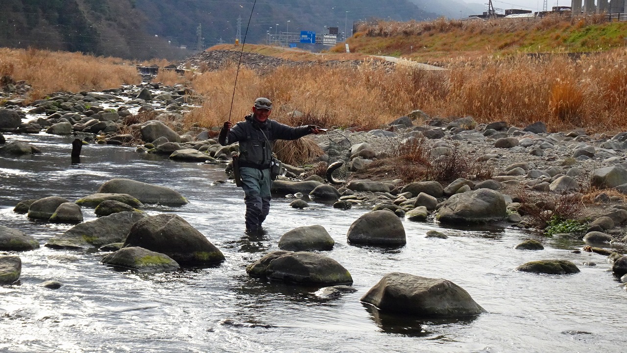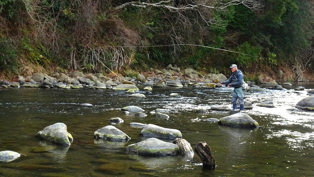 この時間、この寒さではハッチもライズも期待できないので少しでもやる気のありそうなニジマスを見つけて狙います。