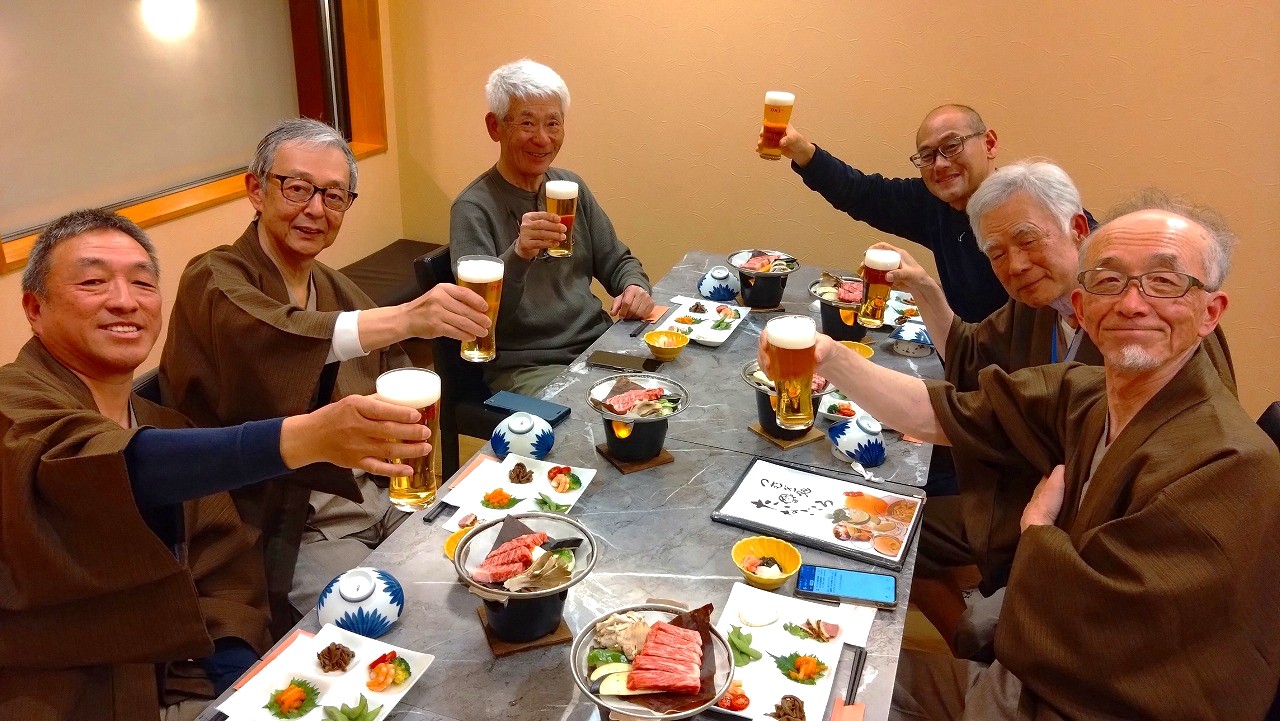 ゆっくり温泉に入って冷え切った体を温めた後はメインイベントの晩餐会。