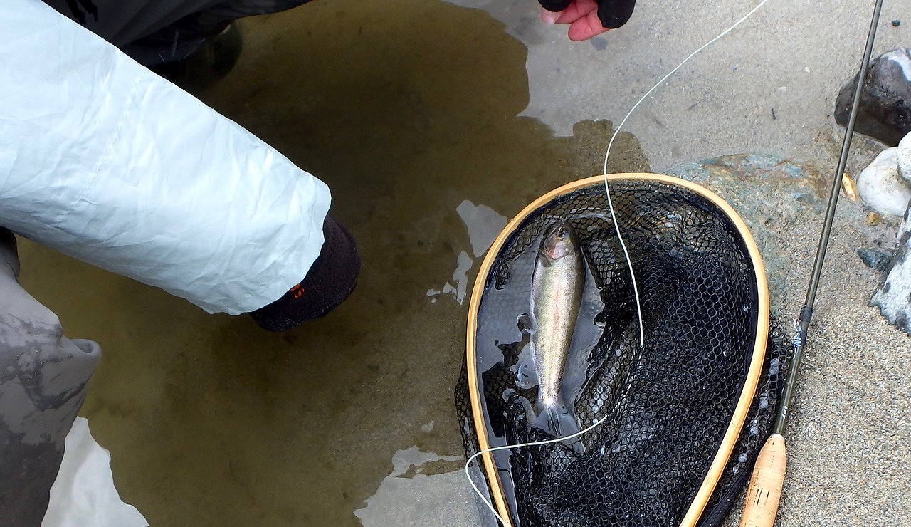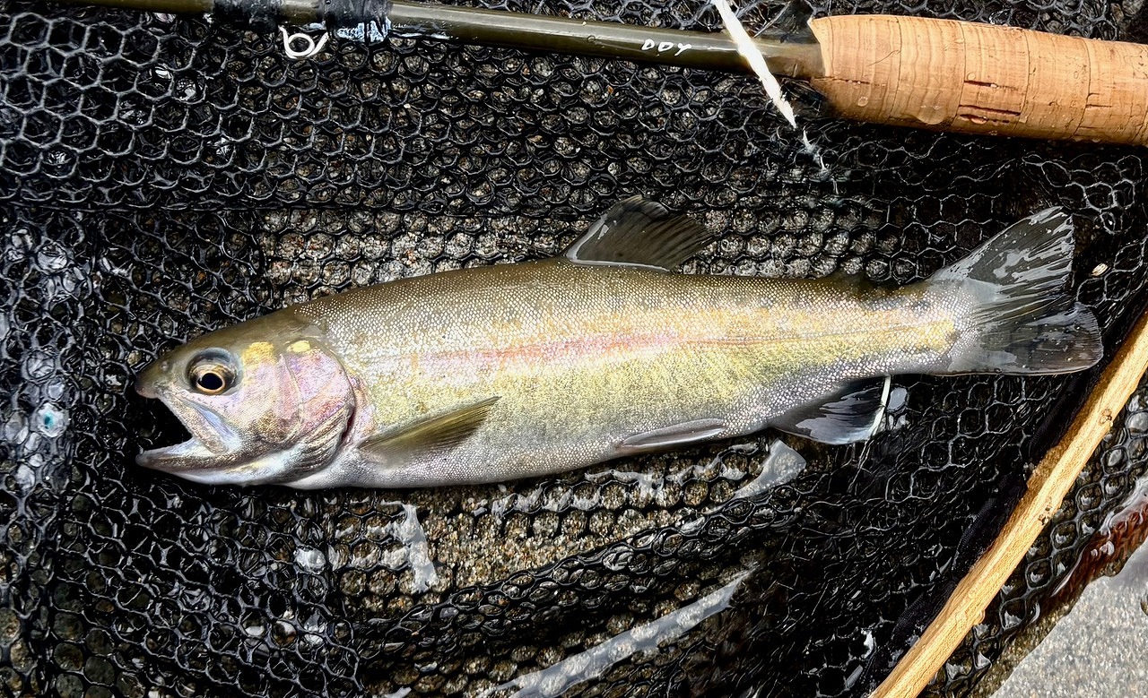 ライズの主はニジマスくん、苦労の末見事Fくんに軍配が上がったが、上流に入ったチームの釣果が気になる。