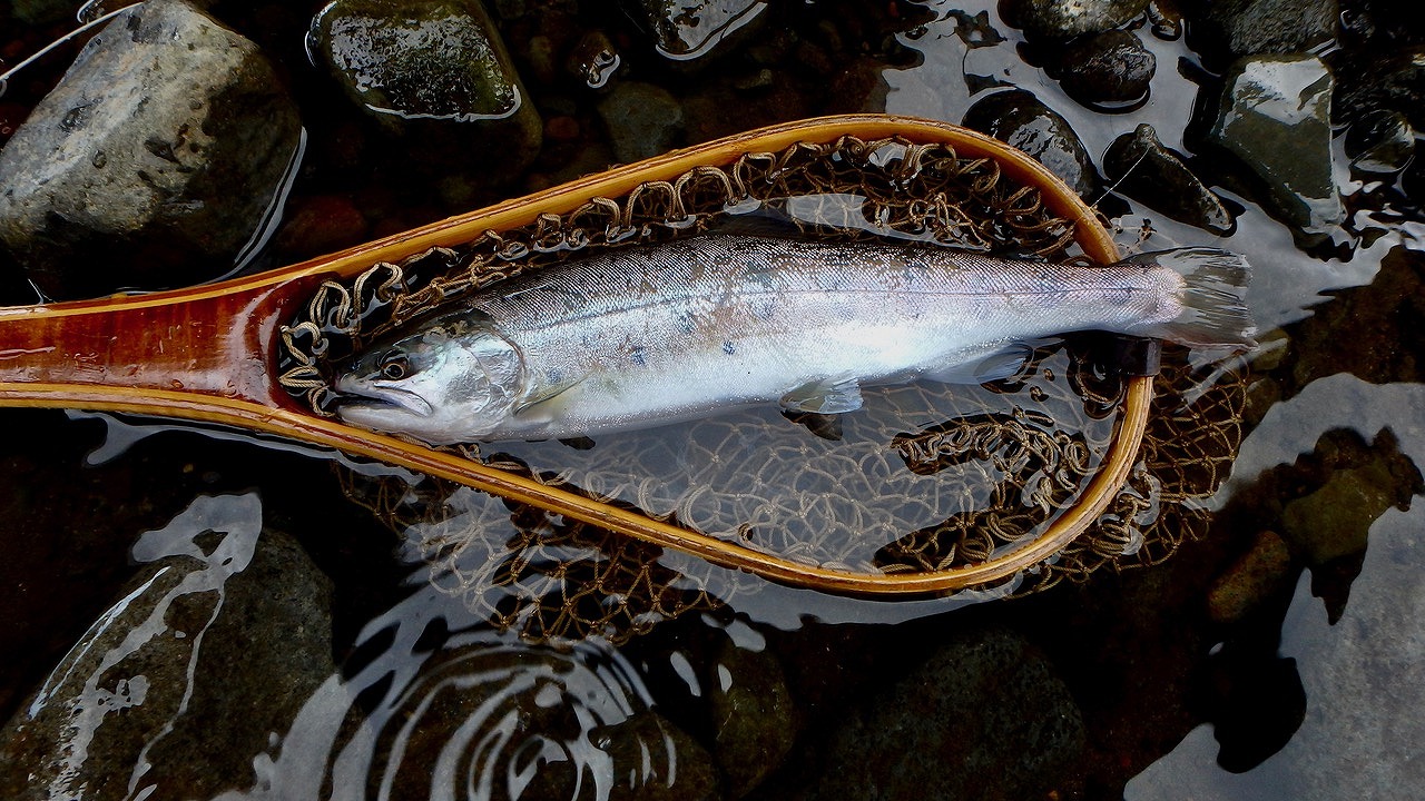 下流のプールにはデカいニジマスがいるようで派手なエラアライの音と共にジャンプが数回見受けられた。